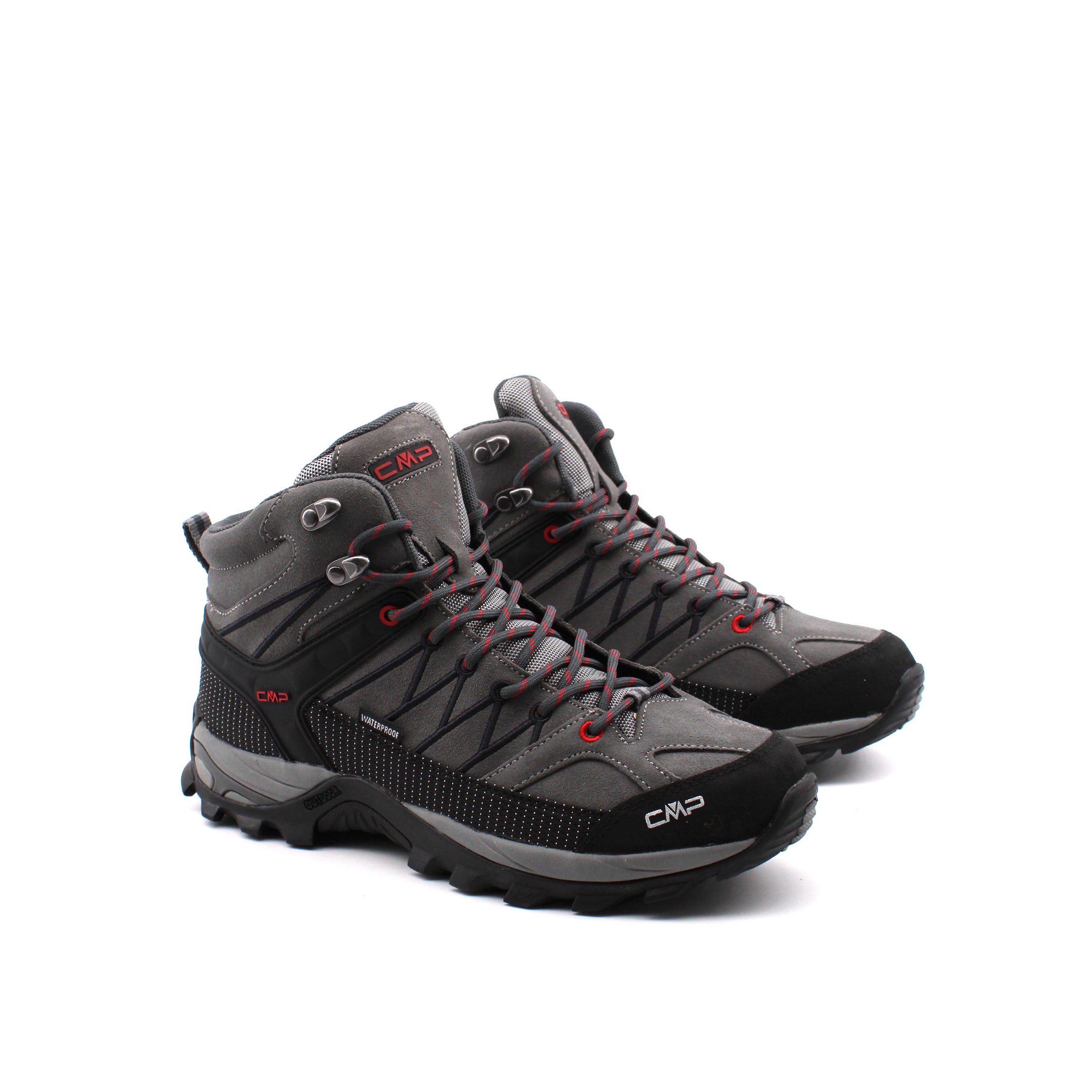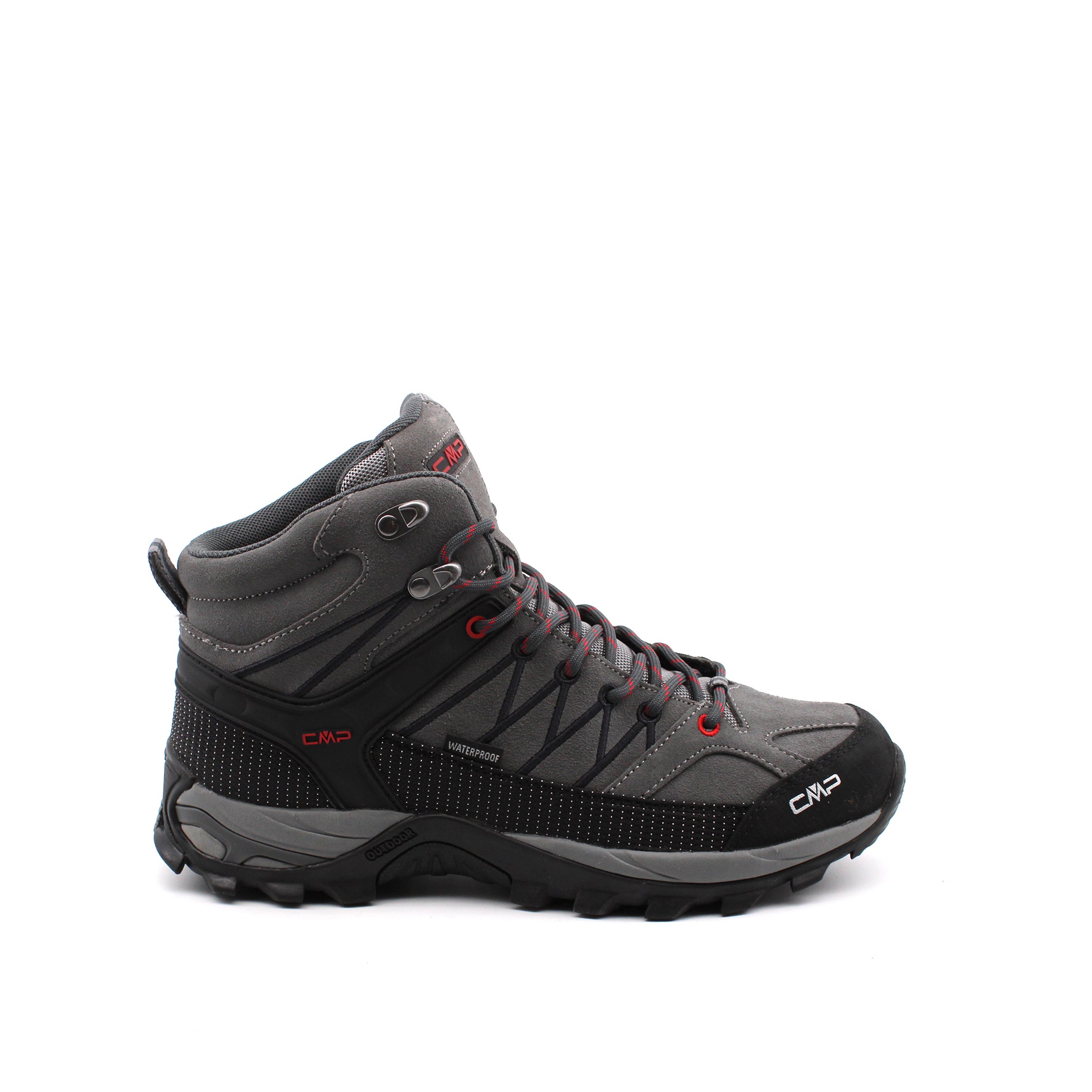 Scarpone trekking da uomo Cmp Rigel Mid in vera pelle con inserti in tessuto e fondo in gomma Fullongrip, sottopiede Ortholite e fodera Waterproof Clima Protect. Modello ideale per le tue escursioni.