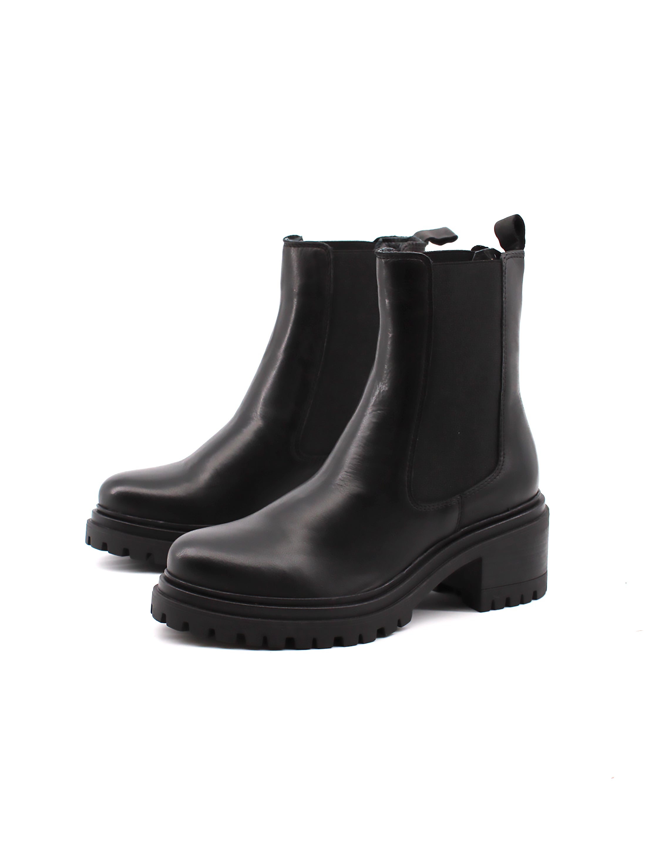 La suola in gomma offre presa e aderenza, rendendo questi stivaletti ideali anche per le giornate più piovose. Con un tacco di 6 cm, danno un po' di slancio senza esagerare, ideale per chi cerca un equilibrio tra eleganza e praticità. La tomaia in pelle completa il look, conferendo un aspetto raffinato e resistente.