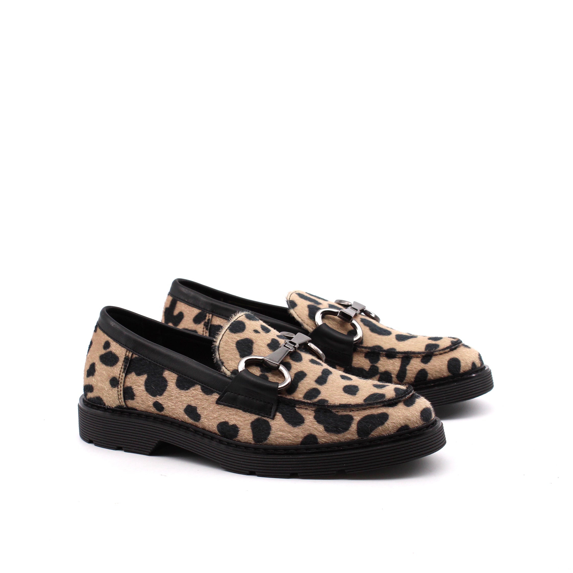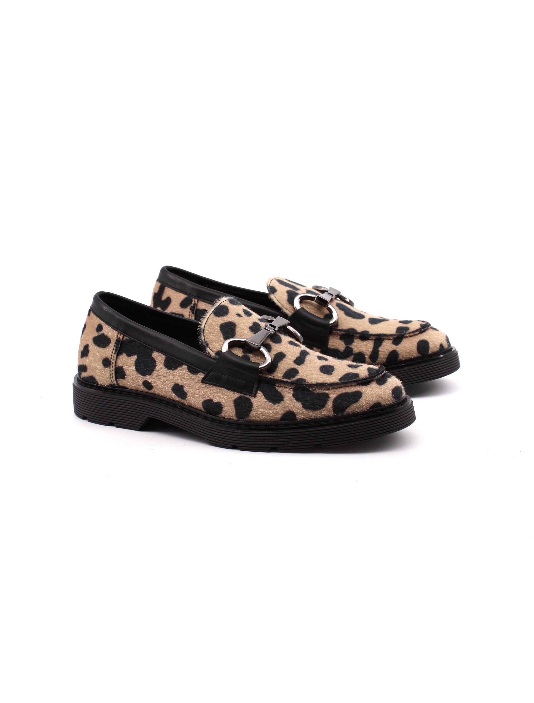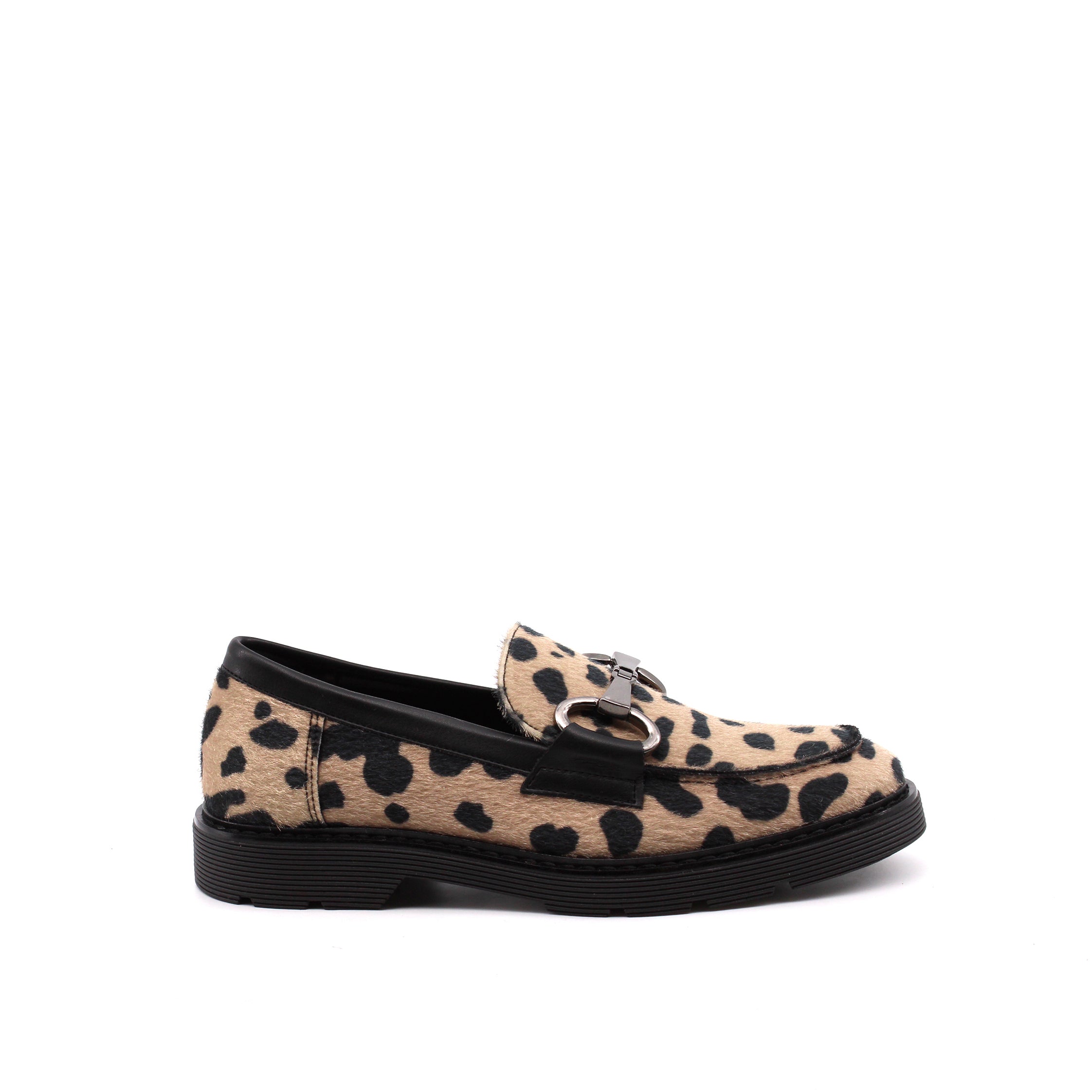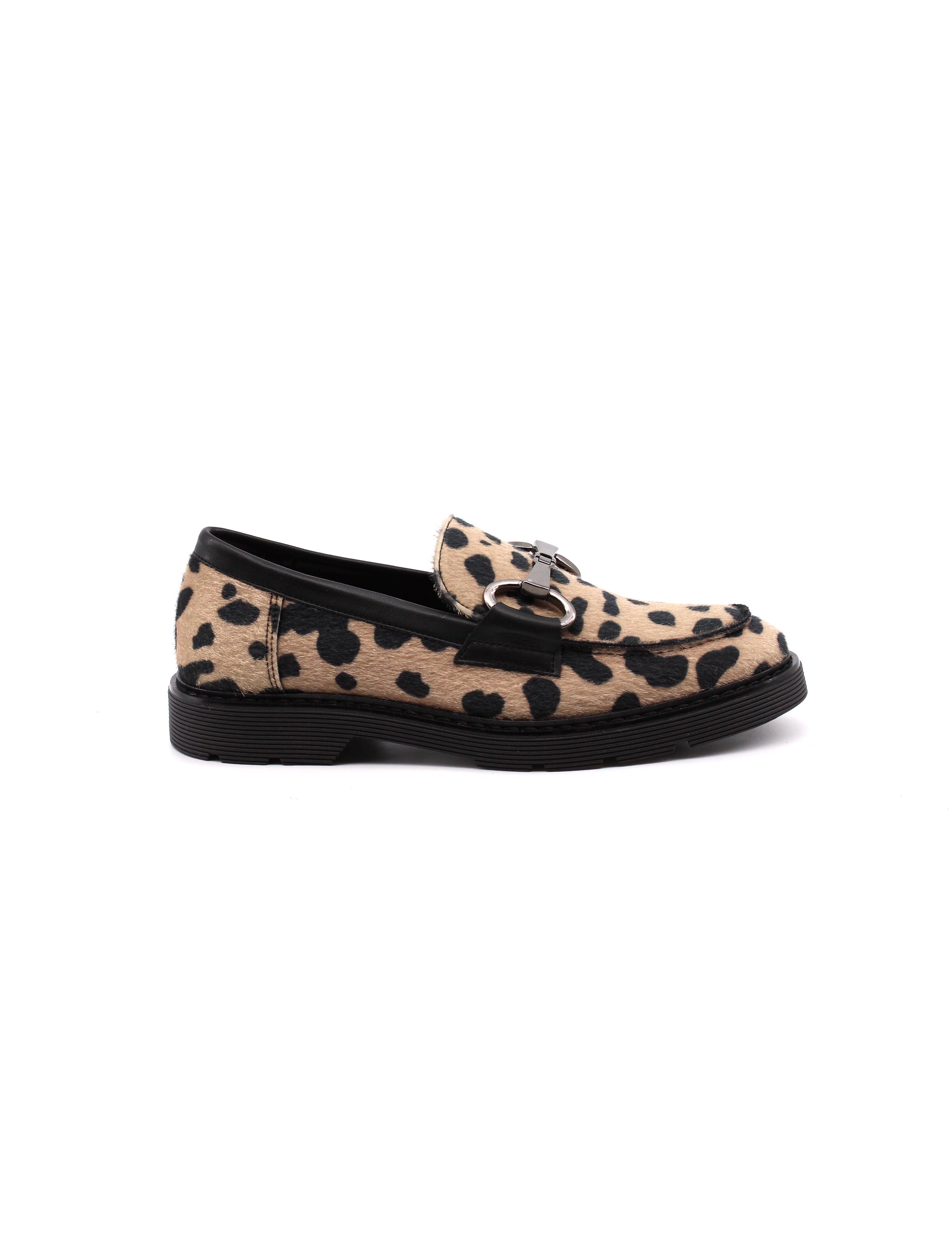 Mocassino maculato con morsetto da donna fantasia leopardo con dettagli in metallo collezione Conte' Studio 1978 Made in Italy, sottopiede in vera pelle e suola in gomma altezza 3 cm. Comodo e facile da abbinare con tutti i tuoi outfit.