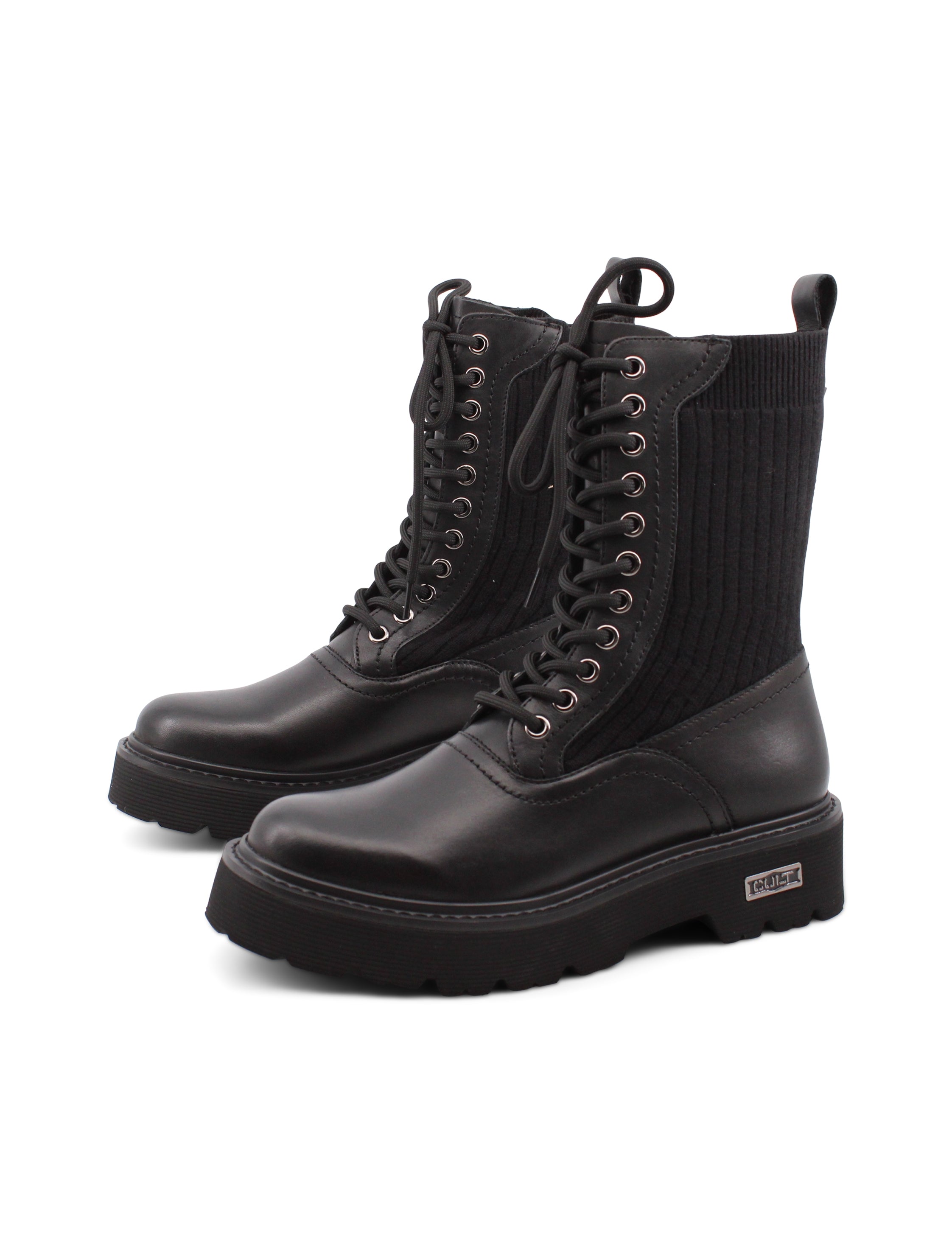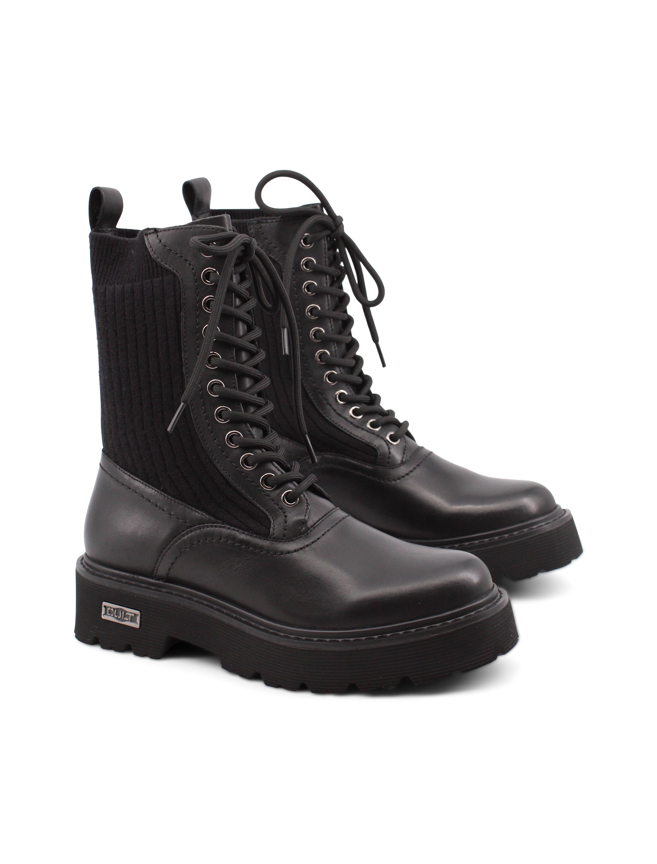 Il modello Slash 4588 Mid di Cult è l'anfibio nero che ogni donna dovrebbe avere nel proprio guardaroba. La tomaia in pelle e tessuto non solo offre uno stile robusto e moderno, ma è anche progettata per durare. Puoi contare su una chiusura con lacci che ti permette di adattare la calzatura al tuo piede, garantendo una calzata comoda e sicura.