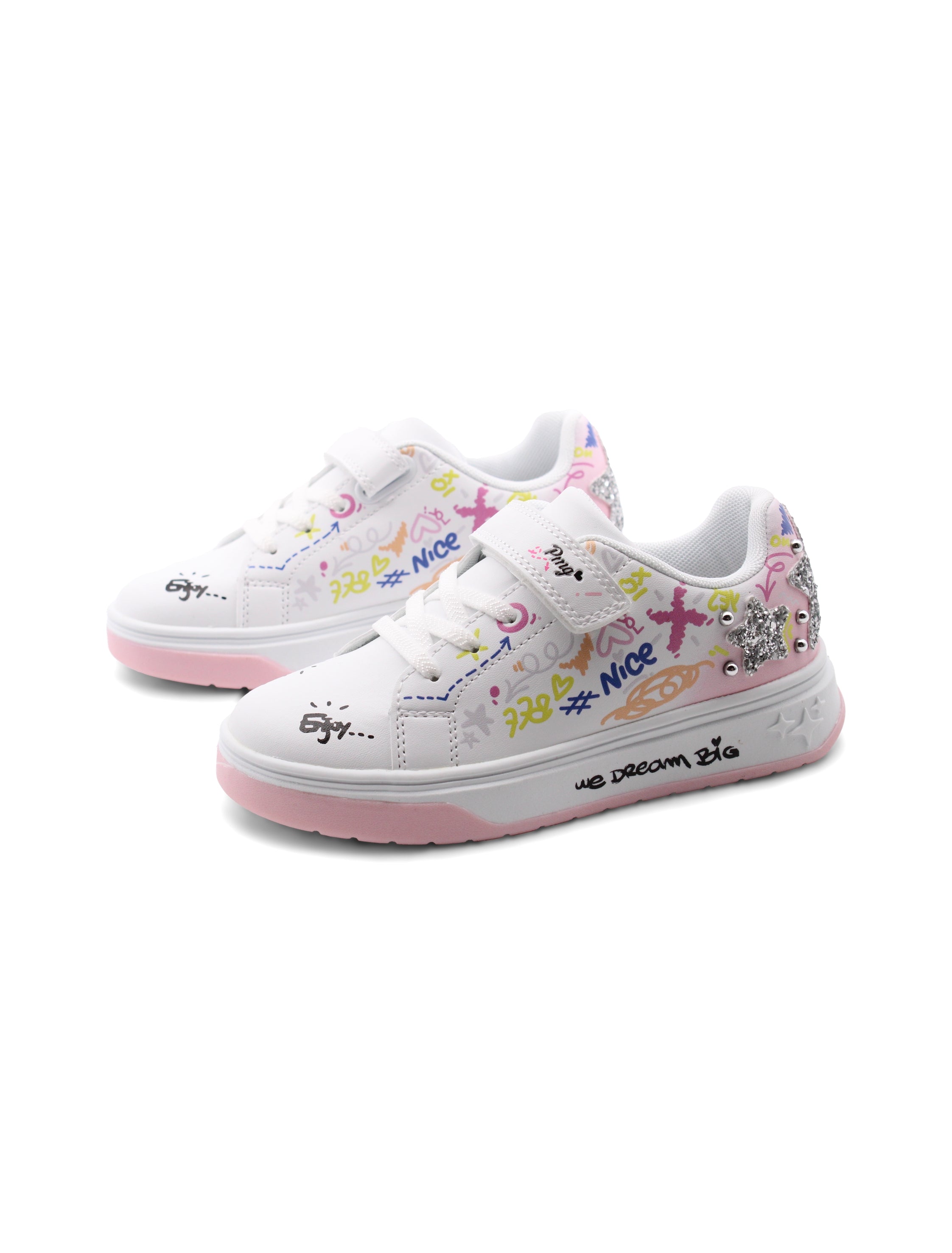 Le nuove sneaker Primigi con stampa, glitter e borchie sono perfette per le piccole fashioniste. La chiusura con velcro e lacci elastici rende facile e veloce indossarle, perfette per le corse quotidiane. La fodera in tessuto assicura un comfort che dura tutto il giorno, mentre il plantare removibile permette di adattarlo alle esigenze di ogni piede.
