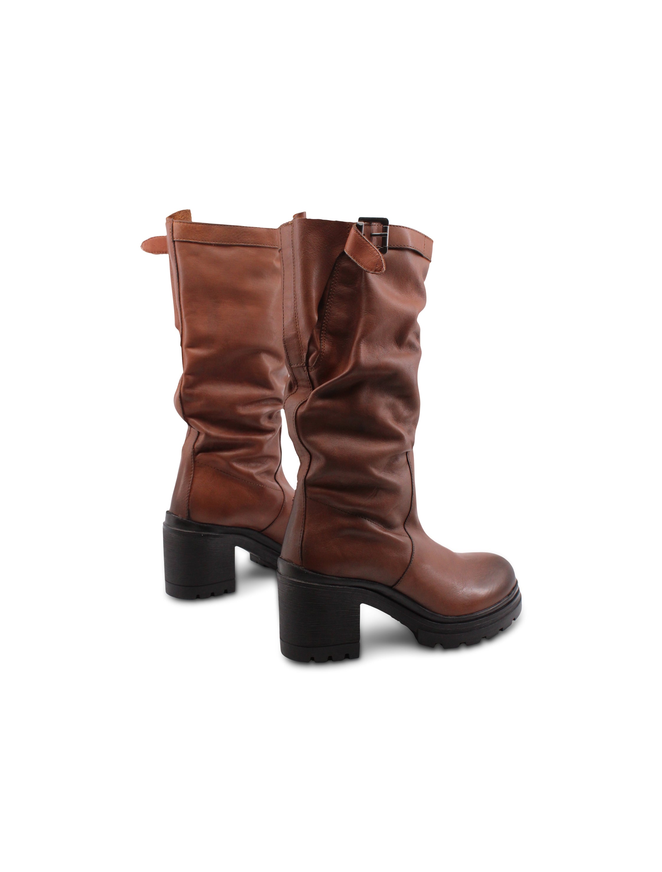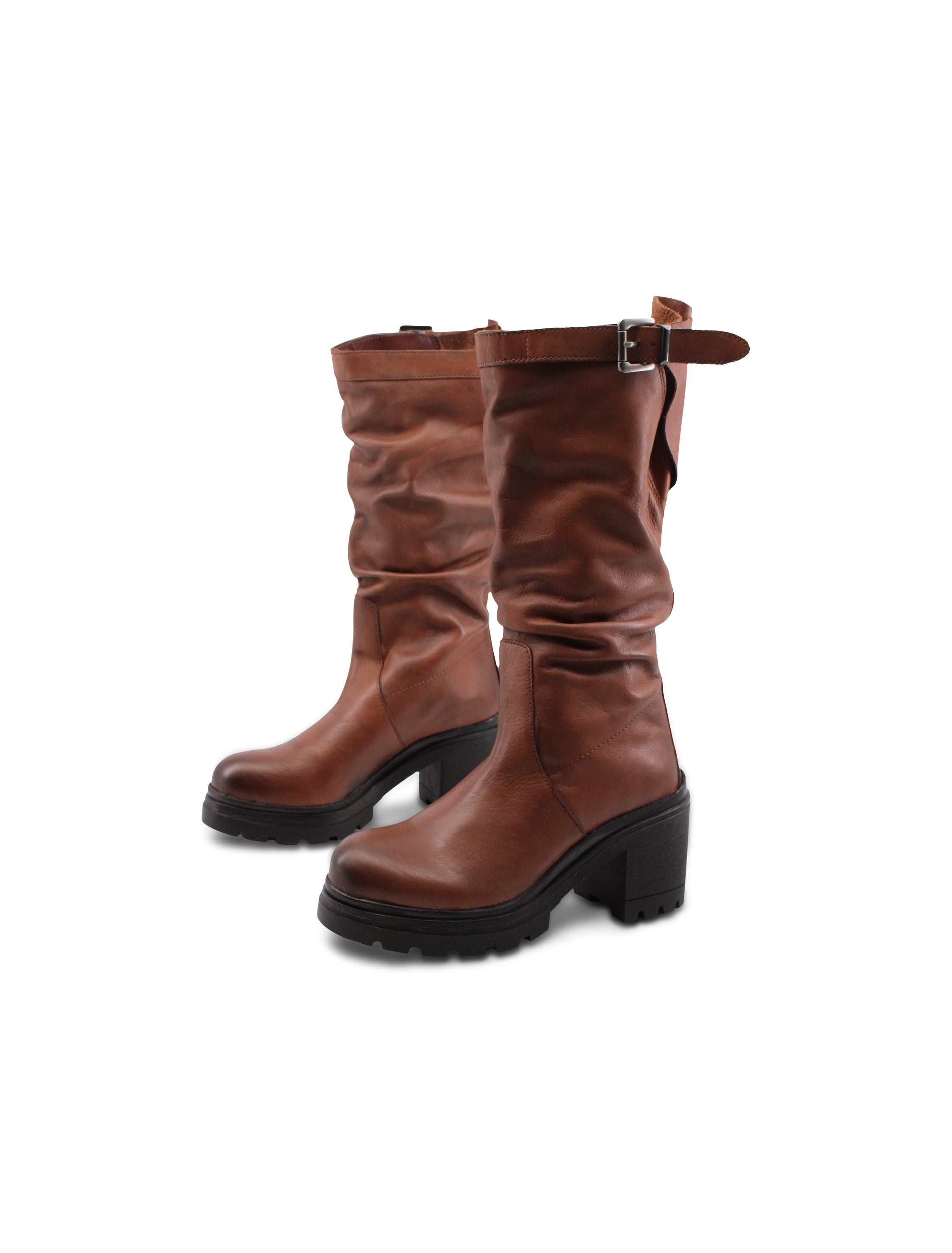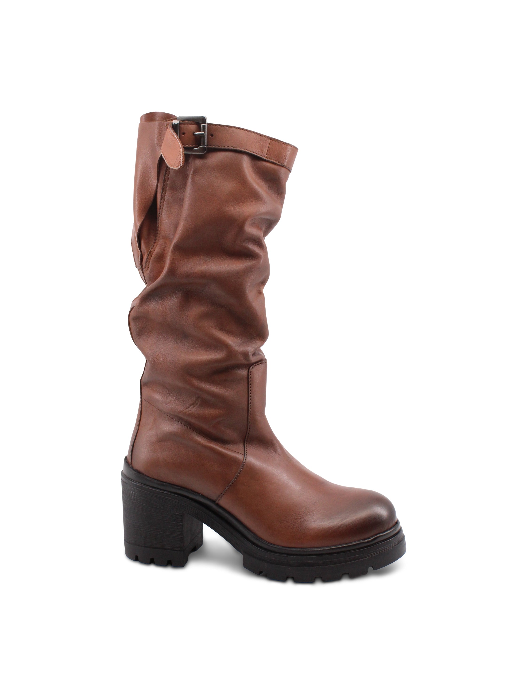 Stivale in pelle con tacco e plateau